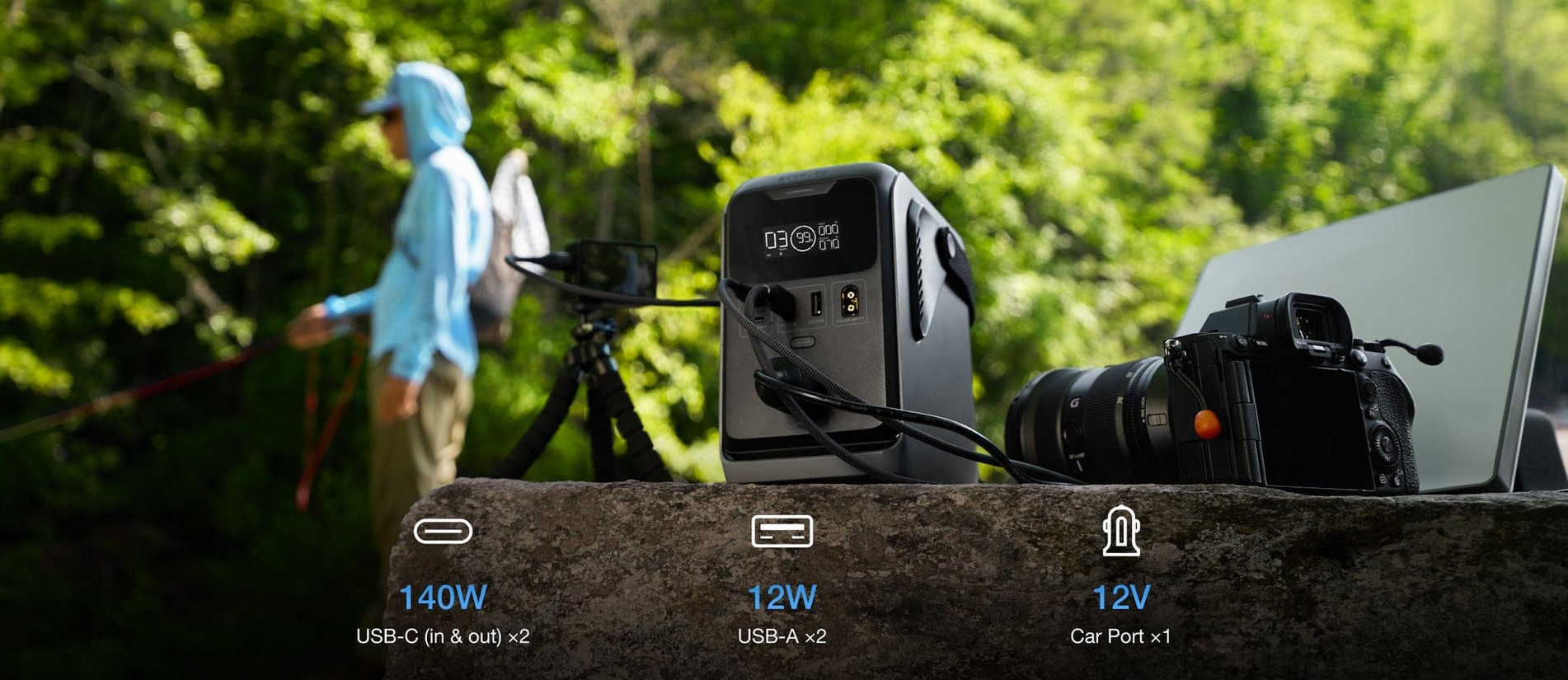 Ren likestrøm leverer 300 W total effekt (maks. 140 W én port, inkludert en 12 V bilport) – nok til 90 % av viktig utendørsutstyr. Perfekt for alle dine lette campingstrømbehov.