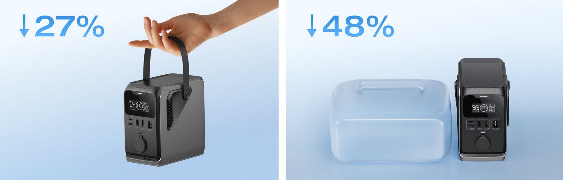 * Trail 300 DC er 27% lettere og 48% mindre enn tilsvarende EcoFlow River 3 i sammenlignbar størrelse.